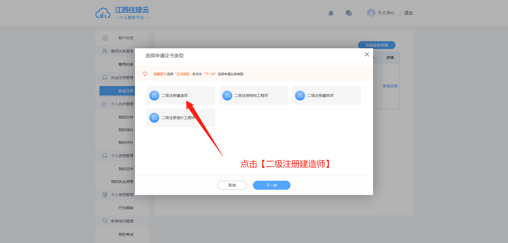 以下操作屬于建造師注冊流程,僅適用于已有住建云聘用單位的人員。若你尚未有聘用單位,則無需關(guān)注 本操作流程。